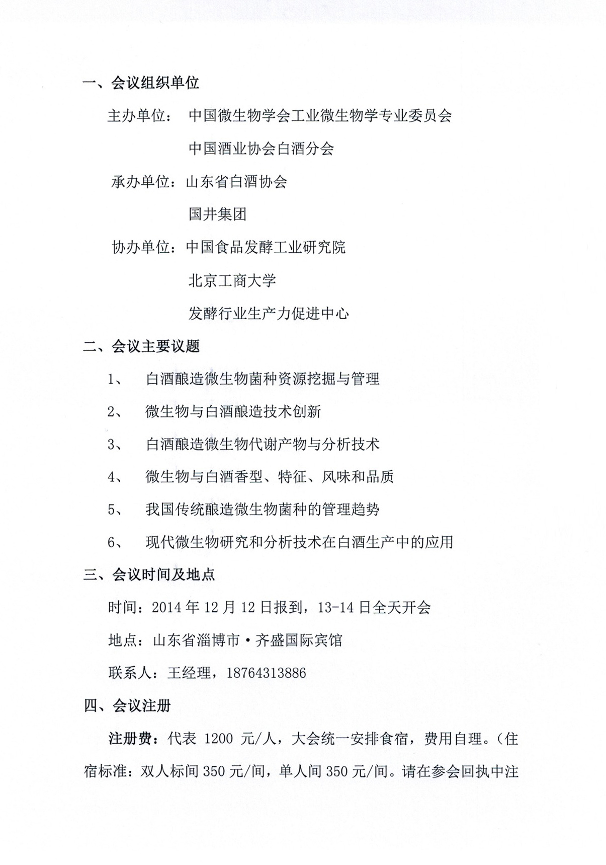 2014第二屆中國微生物與白酒釀造技術(shù)研討會