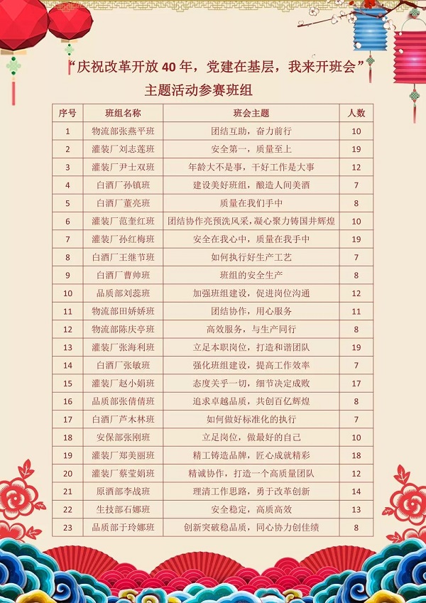 為慶祝改革開放四十年,提高集團(tuán)基層班組的工作部署、組織和執(zhí)行能力,全面推進(jìn)班組管理水平,深化班組建設(shè),2018年10月20日晚,國井集團(tuán)舉辦主題為“慶祝改革開放四十年,黨建在基層,我來開班會(huì)”的學(xué)習(xí)交流活動(dòng)。