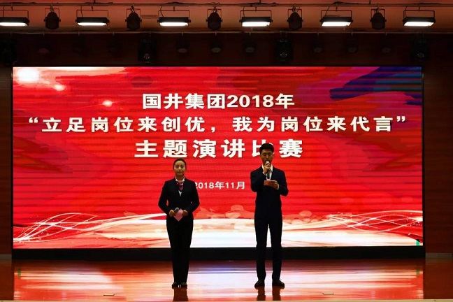 2018年11月24日,國井集團舉辦“立足崗位來創(chuàng)優(yōu),我為崗位來代言”主題演講比賽。來自全集團各部門34名選手各展風采,最終戰(zhàn)略管理部白陽濤突破重圍奪得桂冠。