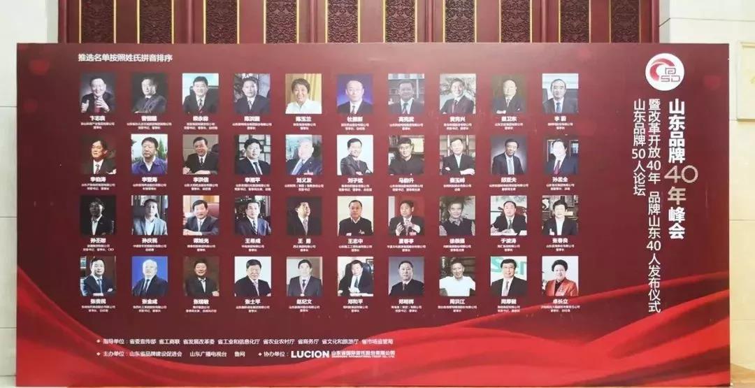 12月20日,在省委宣傳部、省工商聯(lián)、省發(fā)展改革委、省工業(yè)信息化廳、省農(nóng)業(yè)農(nóng)村廳、省商務(wù)廳、省文化和旅游廳、省市場監(jiān)管局等單位指導(dǎo)下,由山東省品牌建設(shè)促進會、山東廣播電視臺等主辦的“山東品牌40年峰會暨改革開放40年,品牌山東40人”頒獎盛典在濟南舉行。