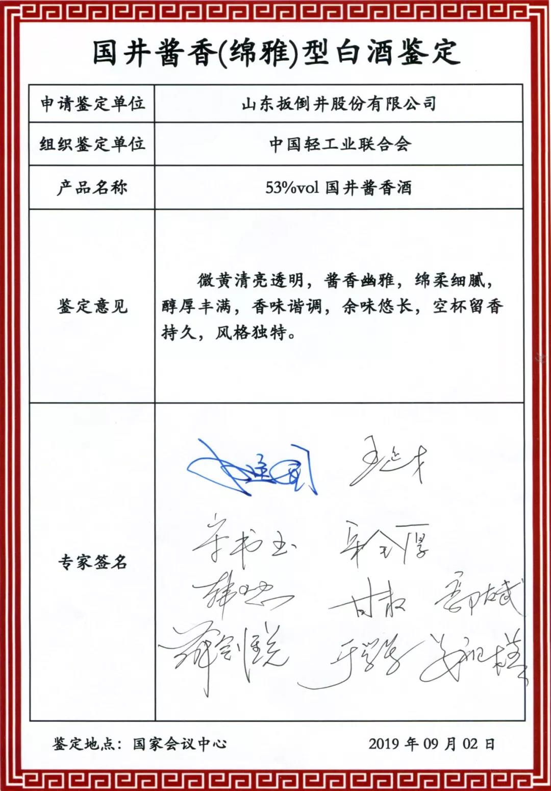中國工程院院士、北京工商大學(xué)校長孫寶國擔(dān)任鑒定委員會(huì)主任,中國酒業(yè)協(xié)會(huì)理事長王延才擔(dān)任鑒定委員會(huì)副主任。中國輕工食品工業(yè)管理中心主任于學(xué)軍,中國酒業(yè)協(xié)會(huì)副理事長兼秘書長宋書玉,國家食品質(zhì)量監(jiān)督檢驗(yàn)中心主任、全國白酒標(biāo)準(zhǔn)化技術(shù)委員會(huì)秘書長宋全厚,仁懷酒業(yè)協(xié)會(huì)會(huì)長、原茅臺(tái)集團(tuán)總工呂云懷,中國科學(xué)院微生物研究所信息中心主任馬俊才,中國農(nóng)業(yè)大學(xué)食品學(xué)院副院長韓北忠,天津科技大學(xué)生物工程學(xué)院院長肖冬光,四川大學(xué)教授周榮清,中國酒業(yè)協(xié)會(huì)副秘書長甘權(quán),山東省白酒協(xié)會(huì)會(huì)長姜祖模,山東省食品工業(yè)協(xié)會(huì)會(huì)長郭友武,山東省糖酒副食品商業(yè)協(xié)會(huì)會(huì)長薛劍銳等業(yè)內(nèi)資深專家、教授擔(dān)任鑒定委員會(huì)委員。