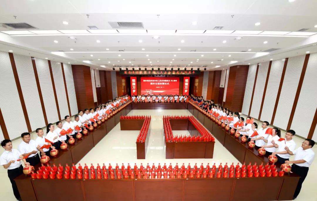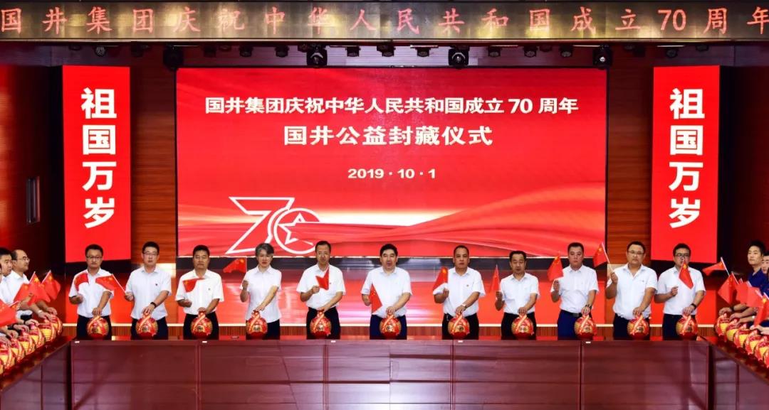 10月1日8時(shí),值此中華人民共和國(guó)成立70周年之際,國(guó)井集團(tuán)來(lái)自不同崗位、不同年齡的70名領(lǐng)導(dǎo)及員工,在歌曲《我和我的祖國(guó)》《我愛(ài)你,中國(guó)》《祝福你親愛(ài)的祖國(guó)》《今天是你的生日》等經(jīng)典愛(ài)國(guó)歌曲的優(yōu)美旋律中,共同封藏了70壇由中國(guó)釀酒大師、中國(guó)第一品酒師、中國(guó)白酒工藝大師、國(guó)家級(jí)評(píng)委團(tuán)隊(duì)精心釀制的高質(zhì)量原酒。此次封藏的70壇高質(zhì)量原酒,全部收益將無(wú)償捐贈(zèng)給公益機(jī)構(gòu)。國(guó)井集團(tuán)員工通過(guò)獻(xiàn)愛(ài)心公益封藏活動(dòng),慶祝偉大祖國(guó)70華誕,祝福祖國(guó)繁榮昌盛、人民幸福安康!